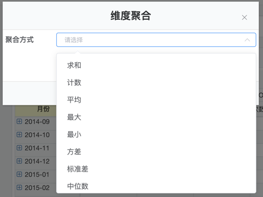 2.在维度上点击按钮,在下拉菜单中选择聚合菜单。